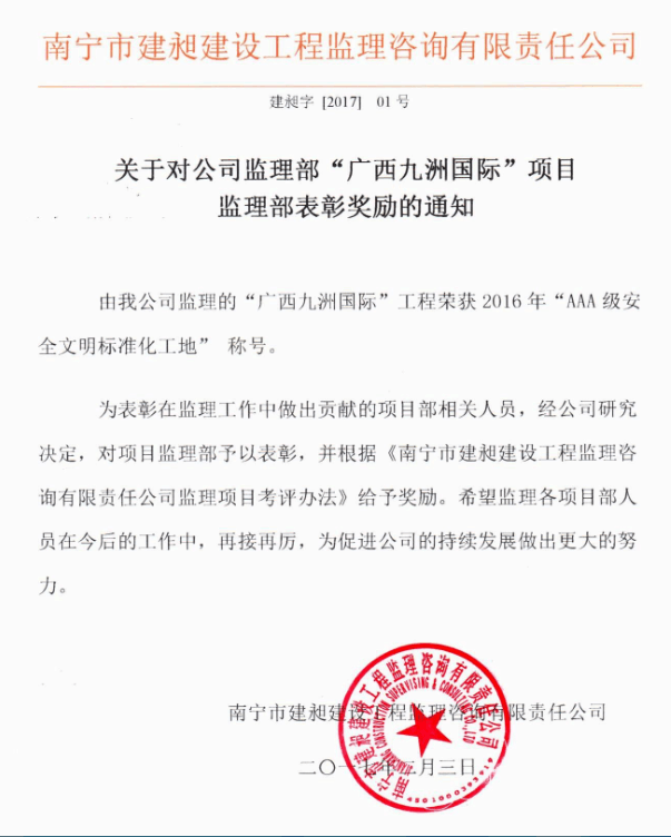公司名稱:南寧市建昶建設工程監(jiān)理咨詢有限責任公司